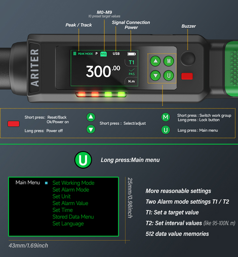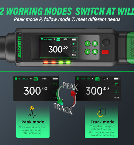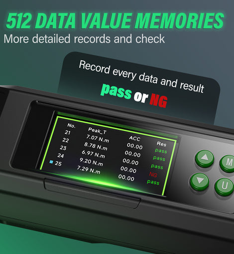 • Smart User-Friendly Features Includes preset torque modes, data storage (up to 500 sets), and audible/visual alerts (buzzer + LED) to prevent over-tightening. The ergonomic non-slip handle reduces fatigue during extended use