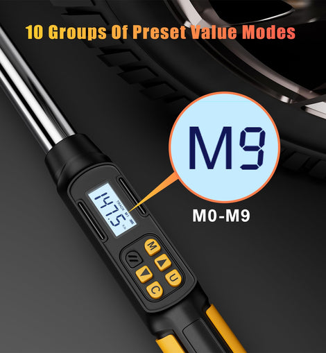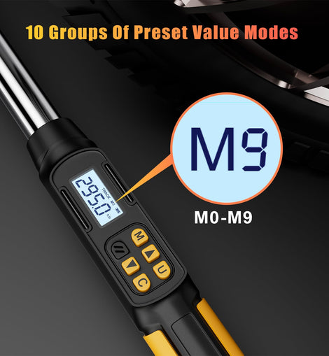 • 【Buzzer & LED Indicator】 When the set torque is reached, the 1/2 inch torque wrench will emit a flashing light, and the buzzer will sound to remind you to stop applying force to avoid damage caused by excessive torque. The angle torque wrench provides 10 preset values, which can save the commonly used torque values and angle values, and can set the upper and lower limits of the torque value and angle value alarm, which is convenient and fast for daily use.