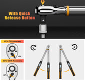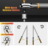 • 【Rugged and Durable】The head of the adjustable torque wrench is made of hardened chrome vanadium steel with a quick release button for quick installation and removal of the socket. The handle design is ergonomic, with a non-slip design, comfortable grip, anti-rust and anti-corrosion. The extended wrench is more labor-saving and easy to use.