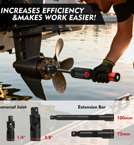 • 1.High-Precision Digital Torque Wrench Equipped with a ±2% high-accuracy sensor and clear LCD display, this torque wrench provides real-time torque measurement with audio and vibration alerts. Ideal for automotive, bicycle, and machinery maintenance requiring precise torque control